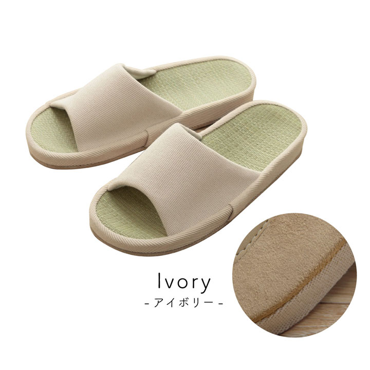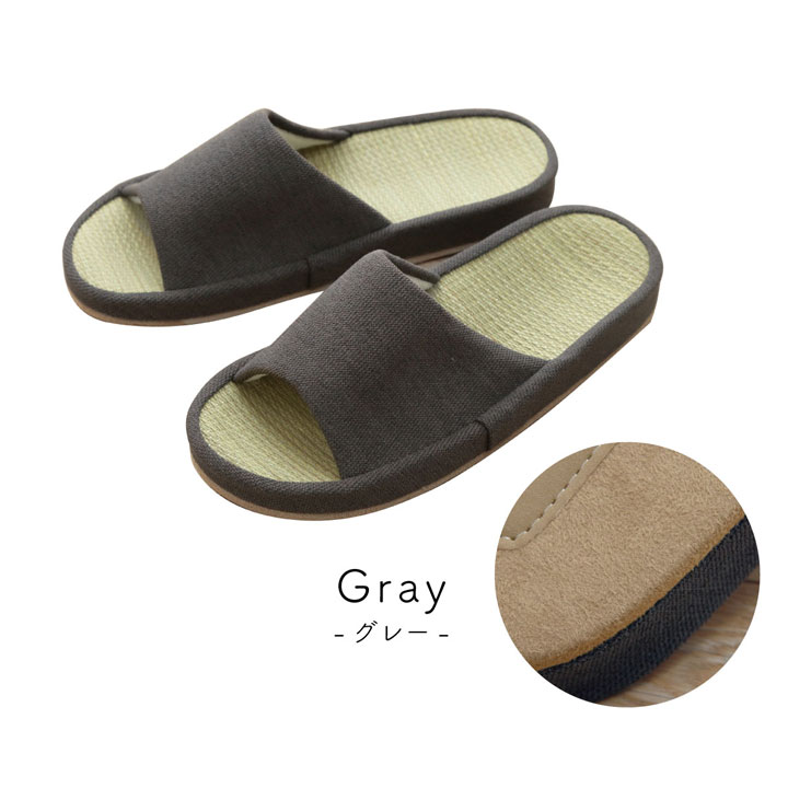 スリッパ ルームシューズ い草 スアブ コンフォート 前あき 通年 アイボリー グレー ブラック Mサイズ Lサイズ